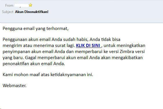 - Alamat email tersebut disalah gunakan oleh spammer untuk melakukan spamming